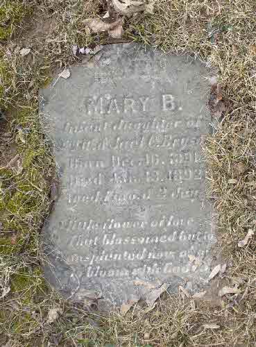 Mary B Bryson was born on 10 December 1891.1 She died on 13 January 1892.1 She was buried on 14 January 1892 at Quarryville Cemetery, Quarryville, Lancaster, Pennsylvania; Inscription: