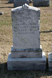 Susanna Anglemyer was born on 1 April 1815 at Northampton, Pennsylvania.1 She was christened on 25 June 1815 at Lutheran & Reformed Congr., Upper Mount Bethel Township, Northampton, Pennsylvania.3 She married John Seiple, son of Samuel Seiple and Magdelina Shipe.1 Susanna Anglemyer died on 20 March 1905 at Quarryville, Lancaster, Pennsylvania, at age 89.1 She was buried on 23 March 1905 at Quarryville Cemetery, Quarryville, Lancaster, Pennsylvania.4 Susanna Anglemyer Find-a-Grave.com ID # 58089224.4