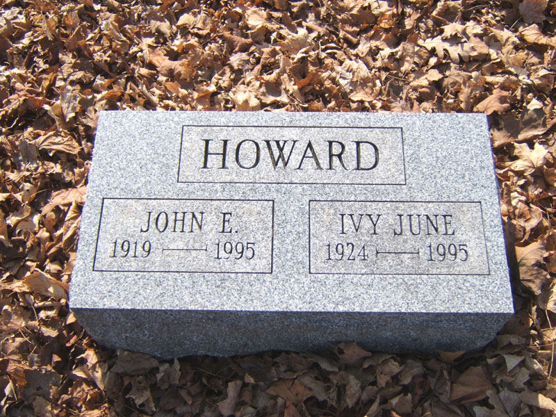 John Eslie Howard was born on 16 September 1919 at Armstrong, Pennsylvania.3 He married Ivy June Metzler before 1947.3 John Eslie Howard died on 20 June 1995 at Kittanning, Armstrong, Pennsylvania, at age 75.3 He was buried on 23 June 1995 at Freeport Cemetery, Freeport, Armstrong, Pennsylvania.3 John Eslie Howard Find-a-Grave.com ID # 82759878 + family links.