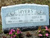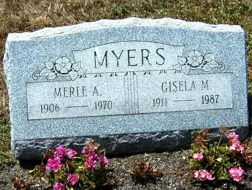 Merle Allen Myers was born in 1906.2 He married Gisela May Howard, daughter of Amos Eslie Howard and Laura Agnes Cousins, before 1970.1 Merle Allen Myers was buried in 1970 at Brookland Cemetery, Bagdad, Westmoreland, Pennsylvania.3 He died in 1970.2 Merle Allen Myers Find-a-Grave.com ID # 70226971.