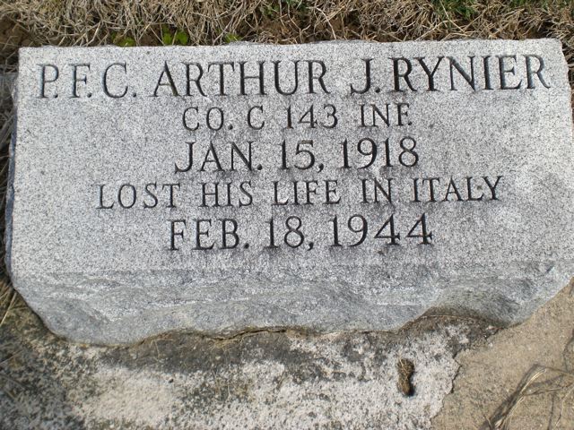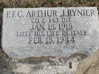 Arthur J Rynier was born on 15 January 1918 at Lancaster, Pennsylvania.1,2 He died on 18 February 1944 at Italy at age 26.2 He was buried in February 1944 at Paradise Mennonite Cemetery, Paradise Township, Lancaster, Pennsylvania.2 Arthur J Rynier Find-a-Grave.com ID # 35480714.