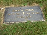 Joan Neidamyer was born on 29 July 1926.1 She married Kenneth Ray Rynier, son of Adam Ellsworth Rynier and Elsie E Leaman.1 Joan Neidamyer died on 26 February 2002 at age 75.1 She was buried on 28 February 2002 at Paradise Mennonite Cemetery, Paradise, Lancaster, Pennsylvania.1 Joan Neidamyer Find-a-Grave.com ID # 54753901.