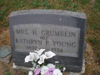 Kathryn P Young was born circa 1897.1 She married Harry L Grumbein, son of Phares Eby Grumbein and Elizabeth Schaffner Long, circa 1915.1 Kathryn P Young was buried in 1934 at Rothsville United Zion Cemetery, Rothsville, Lancaster, Pennsylvania.2 She died in 1934 at Pennsylvania.2 Kathryn P Grumbein Find-a-Grave.com ID # 49504847.