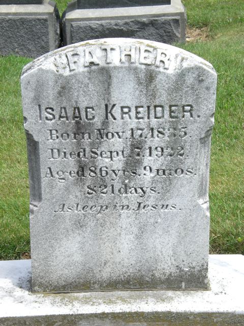 - Isaac Kreider+4 b. 17 Nov 1835, d. 7 Sep 1922