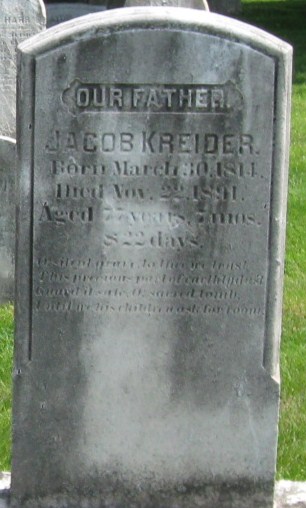 - John Kreider+11 b. 27 Apr 1838, d. 1 Mar 1897