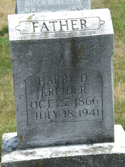 Henry Kreider was born on 27 October 1866 at Leacock Township, Lancaster, Pennsylvania.1,2,3 He married Lillian Margaret Weiler, daughter of Barton S Weiler and Mary (?), before 1892.2 Henry Kreider died on 18 July 1941 at East Lampeter Township, Lancaster, Pennsylvania, at age 74. Cause of death was coronary occlusion, due to chronic myocarditis.2 He was buried on 22 July 1941 at Paradise Mennonite Cemetery, Paradise, Lancaster, Pennsylvania.2,3 Henry Kreider Find-a-Grave.com ID # 55043181.