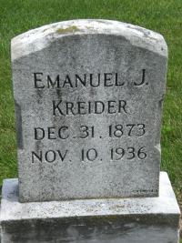 - Emanuel J Kreider3 b. 31 Dec 1873, d. 10 Nov 1936