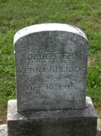 - Verna Kreider1 b. 28 Nov 1895, d. 10 Oct 1918