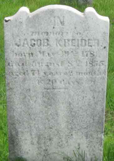 http://trees.ancestry.com/tree/32261278/person/19366421655 - Jacob Diffenbaugh Kreider+ b. 19 May 1781, d. 8 Aug 1855