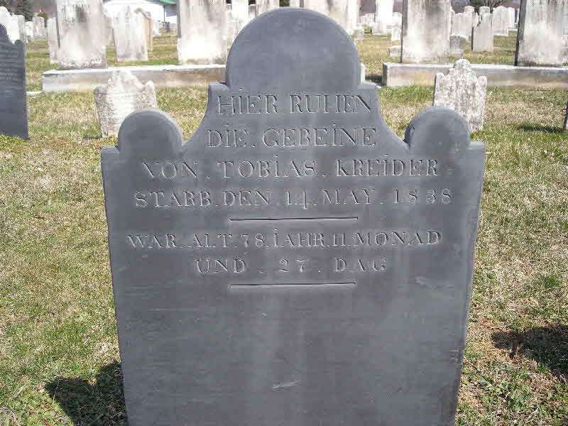 - Tobias R Kreider+ b. 17 May 1750, d. 14 May 1838