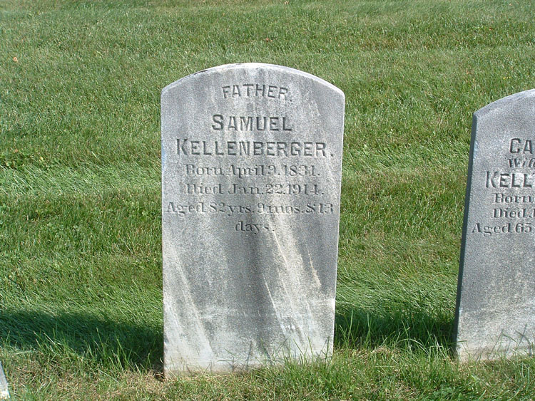 Samuel Kellenberger was born on 9 April 1831 at Pennsylvania.2,3 He married Catherine Hunchberger circa 1856.1 Samuel Kellenberger died on 22 January 1914 at age 82.2 He was buried on 25 January 1914 at Weavertown Amish-Mennonite Cemetery, Weavertown, Lancaster, Pennsylvania.2 Samuel Kellenberger Find-a-Grave.com ID # 35851872.