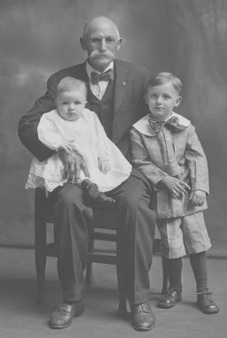 Daniel Lasher holding his grandson Theodore Alexander Lasher. Standing is his grandson Robert Daniel Lasher. Photo owned by Phil Lasher.