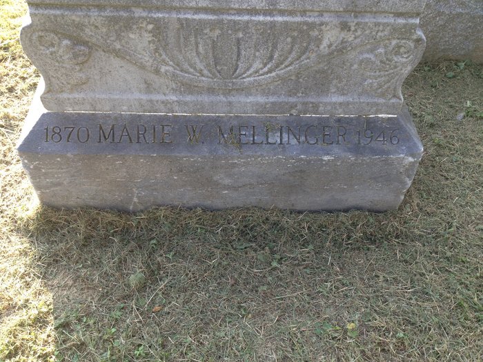Marie Weaver was born on 22 December 1867 at Duncannon, Pennsylvania.1,3 She married Charles Kaufman Mellinger, son of Christian K Mellinger and Rebecca Elizabeth Murray, in 1894 at Philadelphia, Pennsylvania.1 Marie Weaver died on 2 February 1946 at Germantown, Philadelphia, Pennsylvania, at age 78.1 She was buried on 4 February 1946 at Hillside Cemetery, Roslyn, Montgomery, Pennsylvania. Lot 730, Section A, in corner by section D and Susquehanna Road on same stone as her husband.2 Marie Weaver Find-a-Grave.com ID # 113646874.