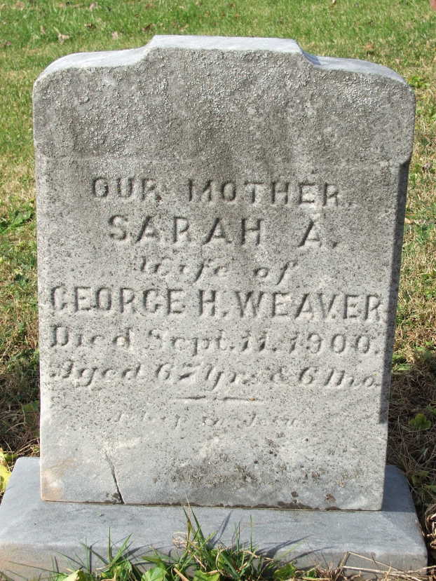 ? As of circa 1852,her married name was Weaver.1 She and George H Weaver appeared on the census of 2 August 1860 at Middletown, Lower Satara Twp, Dauphin, Pennsylvania.2 Sarah A Weaver appeared on the census of 5 June 1880 at Duncannon, Perry, Pennsylvania.3