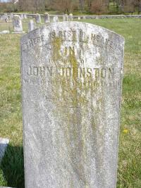 John Johnson married Eliza (?)2 John Johnson was born on 15 December 1797.1 He died on 10 October 1855 at Pennsylvania at age 57.3 He was buried on 13 October 1855 at Middle Octorara Cemetery, Quarryville, Lancaster, Pennsylvania.2 John Johnson Find-a-Grave.com ID # 32221758.
