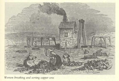 The 1820s was a boom time for the copper mining industry around Camborne. The wealth generated by the industry contributed to significant growth in the local towns, particularly Camborne which developed a reputation as a rough and wild mining town. Some of the mines that worked the rich copper lodes in this area produced enormous quantities of ore - Dolcoath produced 350,000 tons of copper, Carn Brea and Tincroft 360,000 tons. Many of these mines were also rich in tin at a lower depth. Distant from the coast, the area had been one of the earliest to adopt the new steam pumping technology, for despite its inherent costs, effective drainage had proved to be the critical factor in determining success. The ability to work deposits of copper at depth, and the discovery of a tin zone beneath the copper in the core areas of the district ensured that success was sustained, and investment in the area continued. Specialist industries were established within the district to service it - foundries and boiler works, fuse works, drill manufacturers, rope walks, clothing factories and the like. Camborne and Redruth rapidly developed into specialist industrial towns, the acknowledged heart of the Cornish mining industry.