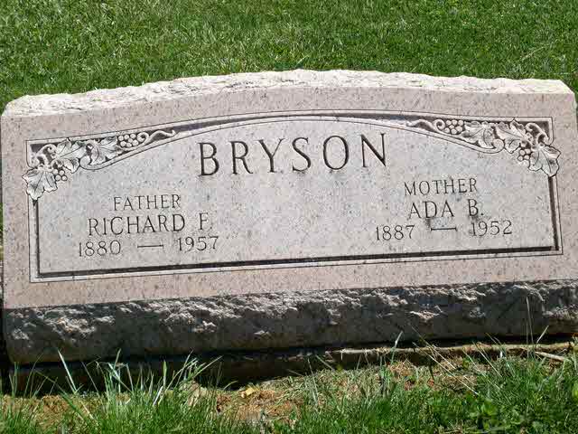 Richard F Bryson was born on 30 May 1880 at Paradise Township, Lancaster, Pennsylvania.1 He married Ada Brill, daughter of Amos Smith and Mary Elliott, circa 1911.2 Richard F Bryson died on 6 October 1957 at Aierstrck Nursing Home, Leola, Lancaster, Pennsylvania, at age 77. Cause of death was a coronary occlusion.1 He was buried on 9 October 1957 at Intercourse United Methodist Cemetery, Intercourse, Lancaster, Pennsylvania.1 Richard F Bryson Find-a-Grave.com ID # 51659464.