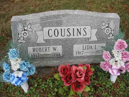 Robert William Cousins was born on 2 September 1917.1 He married Lida Claypoole circa 1935.1 Robert William Cousins died on 23 February 1999 at age 81.1 He was buried on 26 February 1999 at Grace Brethren Church Cemetery, Center Hill, Armstrong, Pennsylvania.1 Robert William Cousins Find-a-Grave.com ID # 41983130.
