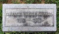 Elizabeth Wilhelm married (?) Edwards.1 Elizabeth Wilhelm was born in 1881 at Lancaster.1 She was buried in 1963 at Quarryville Cemetery, Quarryville, Lancaster, Pennsylvania.1 She died in 1963 at Pennsylvania.1 Elizabeth Wilhelm Find-a-Grave.com ID # 114574022.