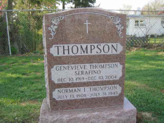 She was the widow of Norman L. Thompson, who died in 1949; and of Orazio "Scrappy" Serafino, who died in 1997.