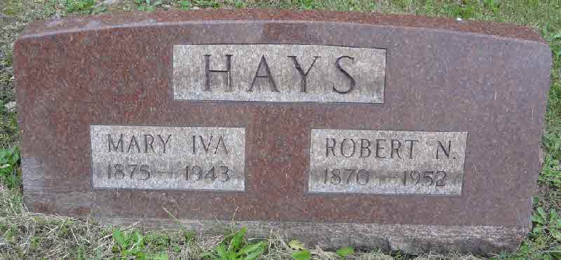 Mary Iva Brackney was born in 1875.1 She married Robert Nye Hays, son of Thomas Hays and Keziah J Foster, after 1890.1 Mary Iva Brackney died in 1943.1 She was buried in 1943 at North Side Cemetery, Butler, Butler, Pennsylvania.1 Mary Iva Brackney Find-a-Grave.com ID # 102969157.