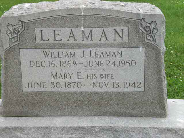 William Jacob Leaman was born on 16 December 1868.2 He married Mary Elizabeth Kellenberger, daughter of Elam F (M) Kellenberger and Mary Ann Zwally, before 1942.1 William Jacob Leaman died on 24 June 1950 at age 81.2 He was buried on 27 June 1950 at Sant John's United Methodist Cemetery, Paradise, Lancaster, Pennsylvania.2 William Jacob Leaman Find-a-Grave.com ID # 52964441.