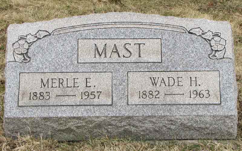 Merle Elizabeth Bigelow was born on 9 November 1883 at Parker, Armstrong, Pennsylvania.3 She married Wade Hays Mast, son of Frank Mast and Letitia Hays, on 19 November 1906.1,4 Merle Elizabeth Mast died on 29 March 1957 at Worthington, Armstrong, Pennsylvania, at age 73.3 She was buried on 31 March 1957 at Slate Lick Cemetery, Slate Lick, Armstrong, Pennsylvania.3 Merle Elizabeth Bigelow Find-a-Grave.com ID # 46433391 + family links.