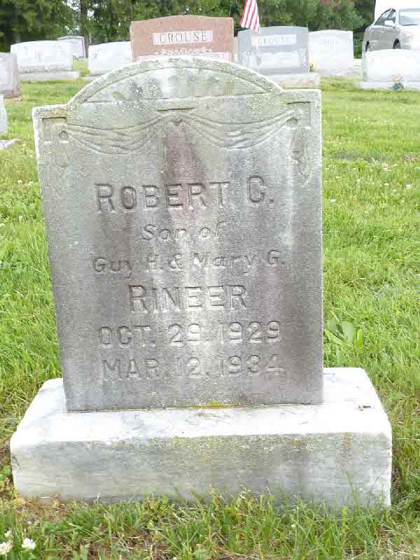 Robert Carl Rineer was born on 29 October 1929 at Lancaster, Pennsylvania.1 He died on 12 March 1934 at Lancaster, Lancaster, Pennsylvania, at age 4. Cause of death was acute tonsillitis with acute uremia.1 He was buried on 14 March 1934 at Middle Octorara Cemetery, Quarryville, Lancaster, Pennsylvania.2 Robert Carl Rineer Find-a-Grave.com ID # 32454698.