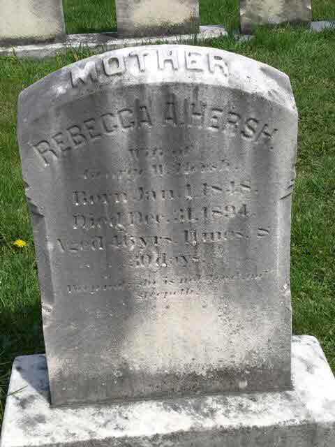 Rebecca A Long was born on 1 January 1848 at Pennsylvania.1,2 She married George Washington Harsh in 1884.2 Rebecca A Long died on 31 December 1894 at age 46.2 She was buried on 3 January 1895 at Leacock Presbyterian Cemetery, Paradise, Lancaster, Pennsylvania; Her name is spelled Hersh on her tombstone and her husband's name is spelled Harsh on his tombstone.2 Rebecca A Long Find-a-Grave.com ID # an unknown place ; 36162029.
