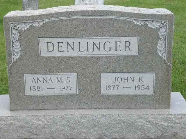 John K Denlinger was born on 5 December 1877.1 He married Anna M S. (?) before 1909.1 John K Denlinger died on 28 February 1954 at age 76.1 He was buried on 3 March 1954 at Paradise Mennonite Cemetery, Paradise, Lancaster, Pennsylvania.1 John K Denlinger Find-a-Grave.com ID # 54265718 + family links