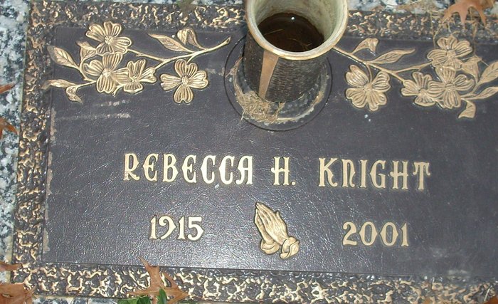 Rebecca Ann Helms was born on 7 June 1915.2 She married William Davis Knight.1 Rebecca Ann Helms died on 26 May 2001 at age 85.2 She was buried on 29 May 2001 at Augusta Memorial Park, Waynesboro, Augusta, Virginia.2 Rebecca Ann Helms Find-a-Grave.com ID # 61844400.