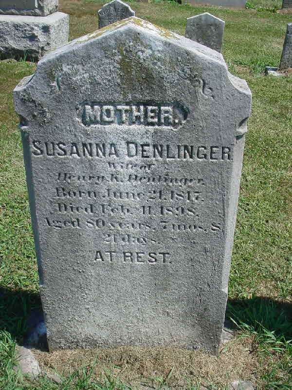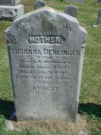 Susanna Groff was born on 21 June 1817.1 She married Henry K Denlinger before 1840 at Lancaster, Pennsylvania.1 Susanna Groff died on 11 February 1898 at age 80.1 She was buried on 14 February 1898 at Hershey Mennonite Church Cemetery, New Milltown, Lancaster, Pennsylvania.1 Susanna Groff Find-a-Grave.com ID # 58998556.