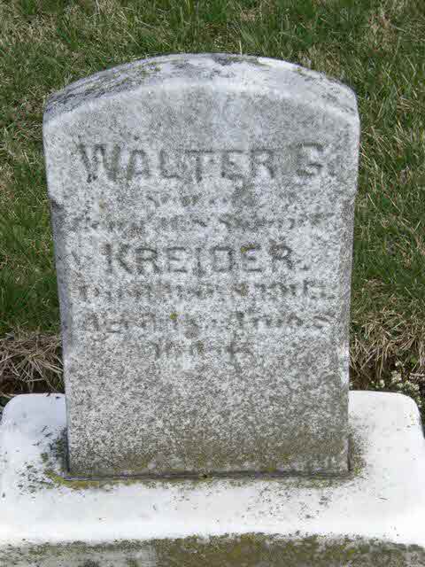 - Infant Kreider5 b. 6 Aug 1866, d. 6 Aug 1866