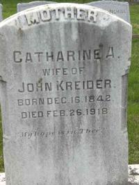 - [S30] Newspaper Obit, Harrisburg Telegraph, Feb 28 1918, Harrisburg, Pennsylvania, obit for Mrs Catharine A Kreider.