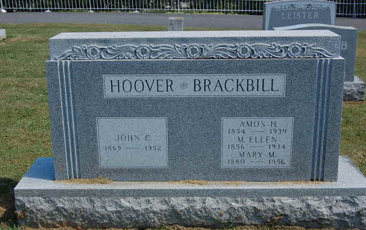 Amos H Brackbill was born on 28 March 1854 at Pennsylvania.1 He married Mary Ellen Hoover circa 1879.2 Amos H Brackbill died on 21 August 1939 at Leacock Township, Lancaster, Pennsylvania, at age 85. Cause of death was advanced age.3 He was buried on 24 August 1939 at Hershey Mennonite Church Cemetery, New Milltown, Lancaster, Pennsylvania.3 Amos H Brackbill Find-a-Grave.com ID # 58545241 + family links.