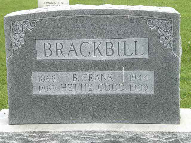 Benjamin Franklin Brackbill was born on 25 November 1866.1 He died on 29 April 1944 at West Chester, Chester, Pennsylvania, at age 77.1 He was buried on 2 May 1944 at Paradise Mennonite Cemetery, Paradise, Lancaster, Pennsylvania.1 Benjamin Franklin Brackbill Find-a-Grave.com ID # 53702254.