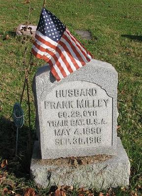 Frank M Milley was born on 4 May 1890 at Lancaster, Lancaster, Pennsylvania.1 He married Emma Irvin on 11 June 1910 at Lancaster, Pennsylvania.2 Frank M Milley died on 30 September 1918 at Camp Dix, New Jersey, at age 28.3 He was buried on 3 October 1918 at Lancaster Cemetery, Lancaster, Lancaster, Pennsylvania; Plot 446.4