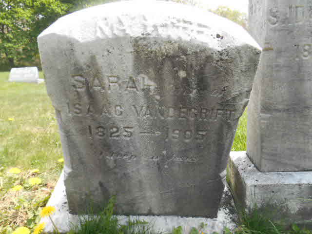 Sarah (?) was born in 1825.1 She married Isaac Vandegrift, son of John Vandegrift and Ester Edwards, before 1856.1 Sarah (?) died in 1905.1 She was buried in 1905 at Kelton, Chester, Pennsylvania.1 Sarah (?) Find-a-Grave.com ID # 129609798.