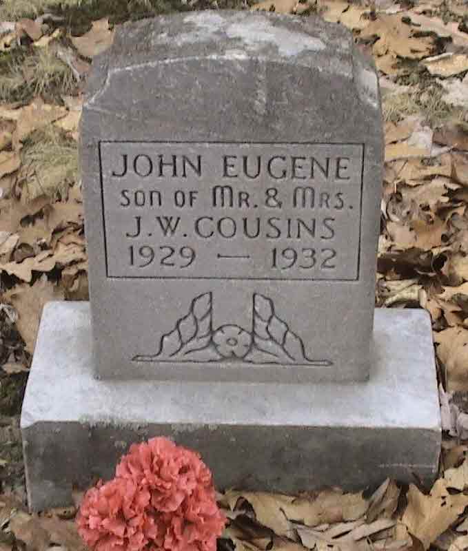 John Eugene Cousins was born on 12 February 1929 at Armstrong, Pennsylvania.1 He died on 10 February 1932 at East Franklin Township, Armstrong, Pennsylvania, at age 2; Cause of death was diptheria.1 He was buried on 11 February 1932 at John's Cemetery, Frenchs Corners, Armstrong, Pennsylvania.1 John Eugene Cousins Find-a-Grave.com ID # 22405697.