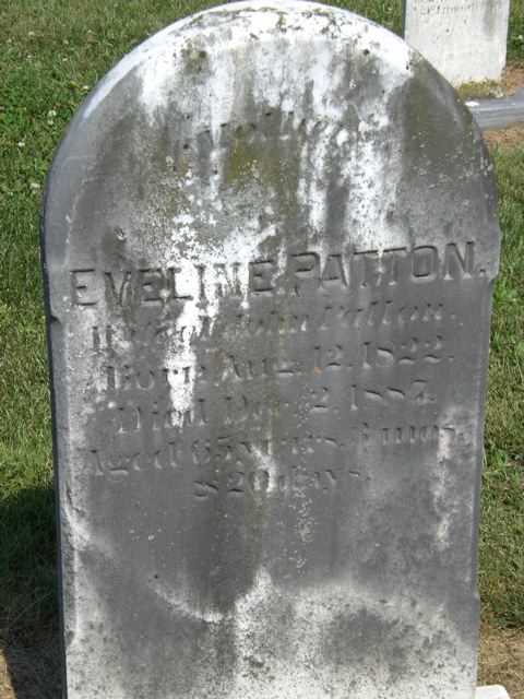Eveline Parmer was born on 12 August 1822.1 She married John Patton, son of Linton Patton and Elizabeth Reel, circa 1842.1 Eveline Parmer died on 2 December 1887 at age 65.1 She was buried on 5 December 1887 at Pequea Presbyterina Cemetery, Gap, Lancaster, Pennsylvania.1 Eveline Parmer Find-a-Grave.com ID # 39771141.