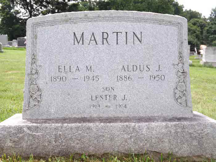 Aldus Jacob Martin was born on 29 November 1886 at Lancaster, Pennsylvania.1 He married Ella M Garner.1 Aldus Jacob Martin died in 1950.1 He was buried in 1950 at Quarryville Cemetery, Quarryville, Lancaster, Pennsylvania.1 Aldus Jacob Martin Find-a-Grave.com ID # 113869234 + family links.