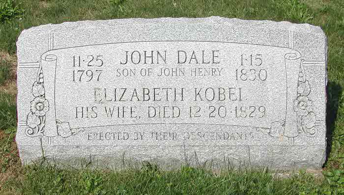 Elizabeth Coble married John Dale, son of John Henry Dale, before 1828.1 Elizabeth Coble died on 20 December 1829. Elizabeth died when son John was only 1 and his father, John died when son John was only 2. John Jr. appears to have been raised by grandparents Coble, George & Elizabeth.2 She was buried on 23 December 1829 at Boalsburg Cemetery, Boalsburg, Centre, Pennsylvania.2 Elizabeth Dale Find-a-Grave.com ID # 99410732.