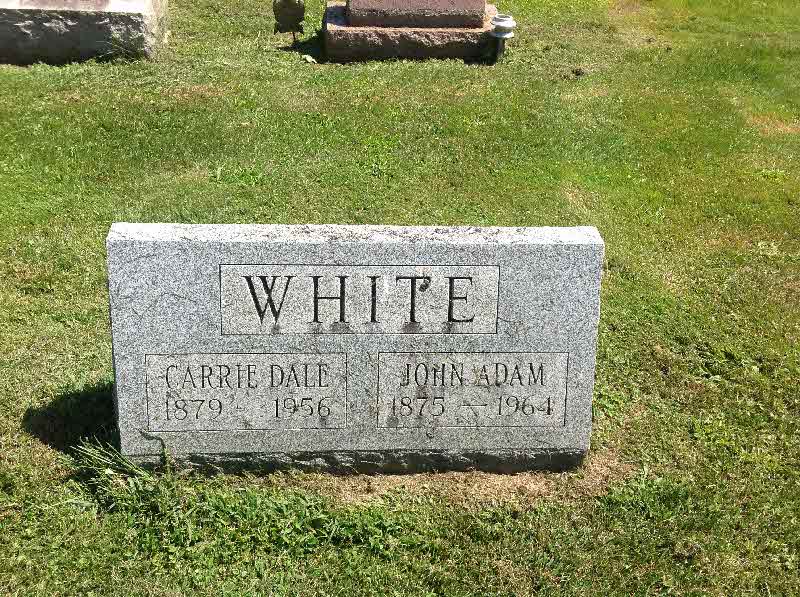 Carrie Isabella Dale was born on 11 August 1879 at Centre, Pennsylvania.1,2 She married John Adam White after 1900.2 Carrie Isabella White died on 4 June 1956 at Harrisburg, Dauphin, Pennsylvania, at age 76.2 She was buried on 7 June 1956 at Houserville Cemetery, Houserville, Centre, Pennsylvania.2