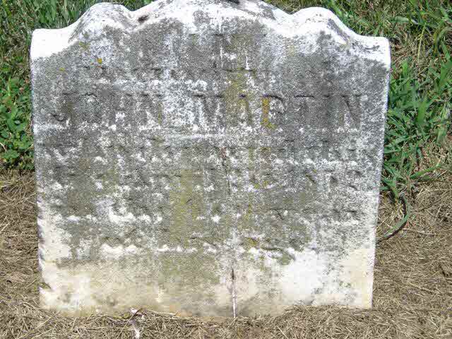 John Martin was born in 1785 at Pennsylvania. 1850 census recorded as his birth place as Maryland.1,2 He married Mary Feister.1 John Martin died on 27 April 1852 at Lancaster, Pennsylvania.3 He was buried on 30 April 1852 at Pequea Presbyterian Cemetery, Gap, Lancaster, Pennsylvania. Note: This stone is in the NE corner of the cemetery near the church.3 John Martin Find-a-Grave.com ID # 39260584.