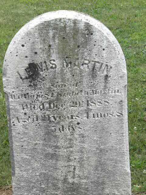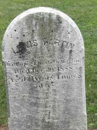 Lewis S Martin was born on 24 August 1867 at Lancaster, Pennsylvania. , date calulated from tombstone.1 He died on 29 December 1888 at Lancaster, Pennsylvania, at age 21.2 He was buried on 2 January 1889 at Pequea Presbyterian Cemetery, Gap, Lancaster, Pennsylvania.2 Lewis S Martin Find-a-Grave.com ID # 40062795 + family links.