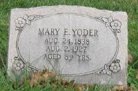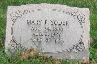 Mary Elizabeth Findley was born on 24 August 1838 at Colerain Township, Lancaster, Pennsylvania.4,2 She married Christian S Yoder, son of Jacob Yoder and Barbara Lapp, circa 1878 at Lancaster, Pennsylvania.1 Mary Elizabeth Yoder died on 29 August 1927 at Warwick Township, Lancaster, Pennsylvania, at age 89. Cause of death was cerebral hemorrhage.4,2