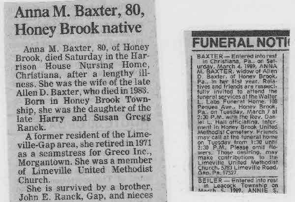 , Obituary (Author has copy). - [S22] Lancaster Newspapers