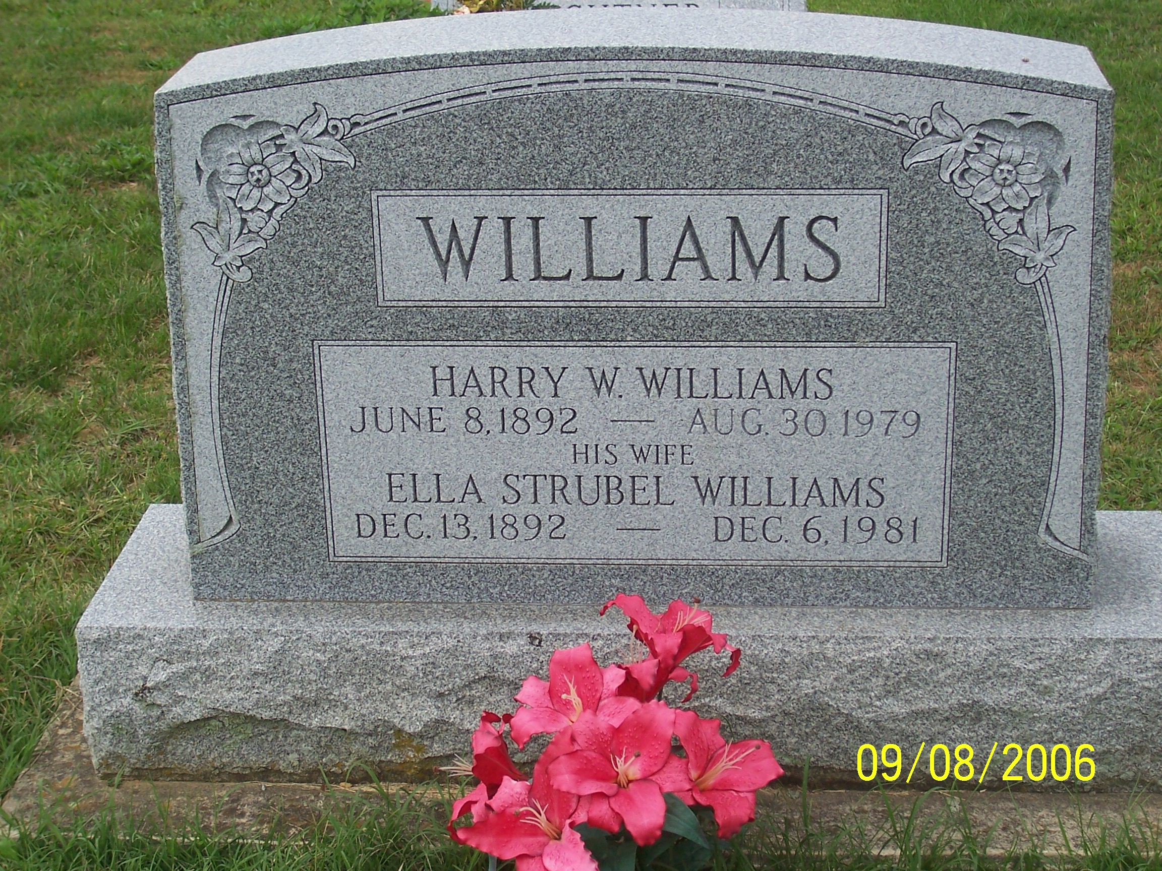 Harry Wells Williams was born on 8 June 1892 at Bart Twp, Lancaster, Pennsylvania, Obituary in Maggie Hoover's scrapbook. He married Ella Louise Struble, daughter of George Strubel and Mary Graham, on 6 June 1912 at St John's Church, Paradise, Pennsylvania. Harry Wells Williams died on 30 August 1979 at Lancaster General Hospital, Lancaster, Pennsylvania, at age 87. He was buried on 2 September 1979 at Georgetown Methodist Cemetery, Bart, Lancaster, Pennsylvania.2 Harry Wells Williams Find-a-Grave.com ID # 49645952.