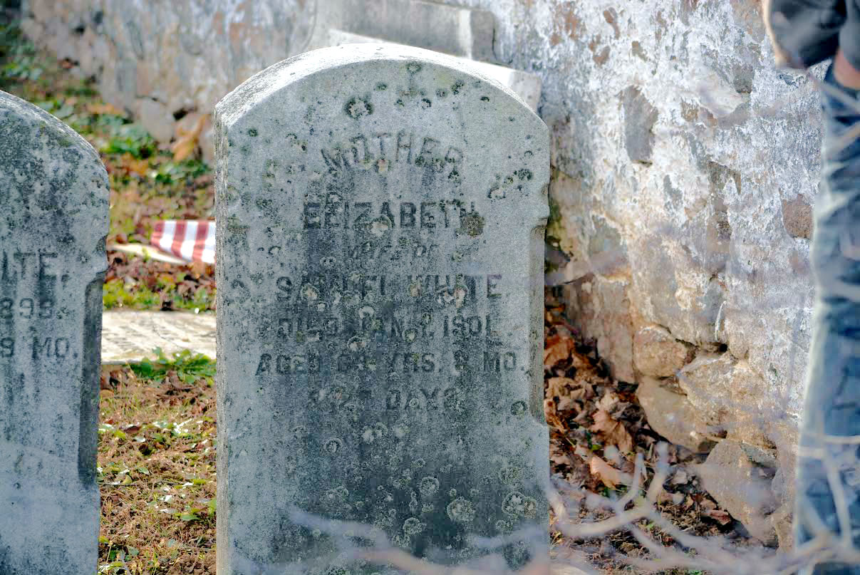 Elizabeth (?) was born in 1806.1,2 She married John White before 1827 at Chester, Pennsylvania.1 Elizabeth (?) died on 1 January 1901.3 She was buried on 4 January 1901 at Honey Brook United Methodist Church Cemetery, Honey Brook, Chester, Pennsylvania.3 Elizabeth (?) Find-a-Grave.com ID # 28993614.