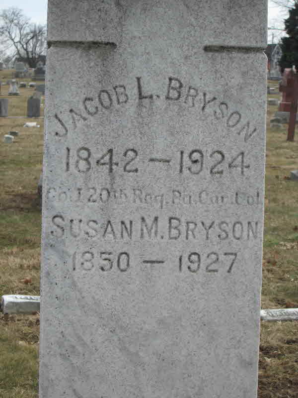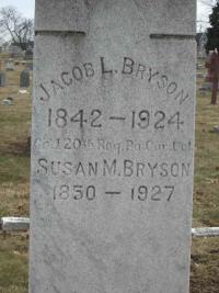 e married Susan M. Huber ca. 1870 and fathered Anna Mary (b. 06/15/71 - married a Lindemuth), Charles M. (b. @1874), and William Henry (b. 03/26/80). Cause of his death is listed as "organic heart disease."2 He was buried on 8 April 1924 at Mount Bethel Cemetery, Columbia, Lancaster, Pennsylvania.2 Jacob Bryson Find-a-Grave.com ID # 63521767.